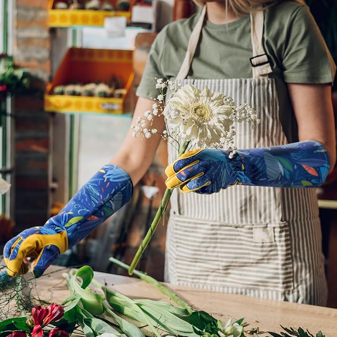 - Keep Your Hands Safe: Working in the garden can be tough on the hands, but our gloves are made with sturdy synthetic leather on the palms and fingertips to provide protection against cuts, scrapes, and blisters. The elbow-length gauntlet cuff also protects your forearms, while the extended elastic cuff ensures a secure fit around the wrist