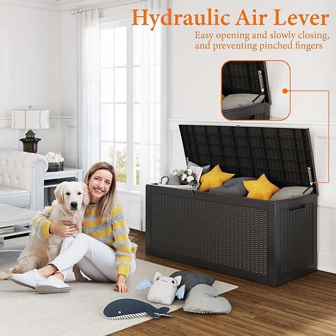 - Weatherproof material: This deck box is made of environmentally friendly polymer resin. It has better water and UV resistance than traditional wood. There is no need to worry about it fading and falling off in the coming years. Years of virtually no maintenance are required.
