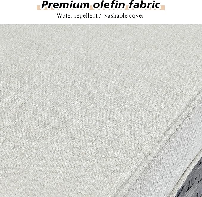- Weather Resistance: PE strengthen wicker UV treated for long lasting. Cushions with yarn dyed woven cover features with UV-resistance, water drops/spilt resistance and good ventilation, resists water drops, coffee spilt. Unlike cheaply made thin print fabric, yarn dyed woven fabric got beautiful texture
