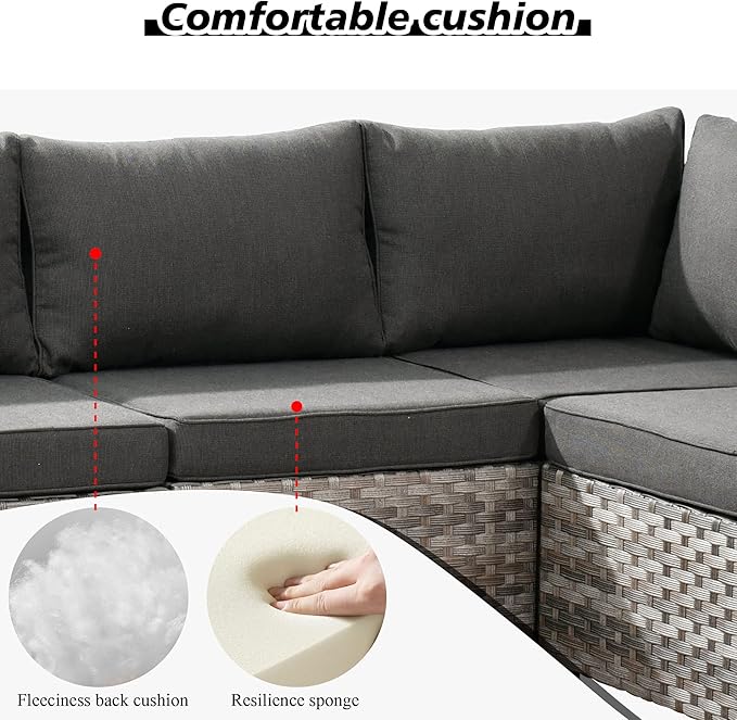 - Weather Resistance: PE strengthen wicker UV treated for long lasting. Cushions with yarn dyed woven cover features with UV-resistance, water drops/spilt resistance and good ventilation, resists water drops, coffee spilt. Unlike cheaply made thin print fabric, yarn dyed woven fabric got beautiful texture