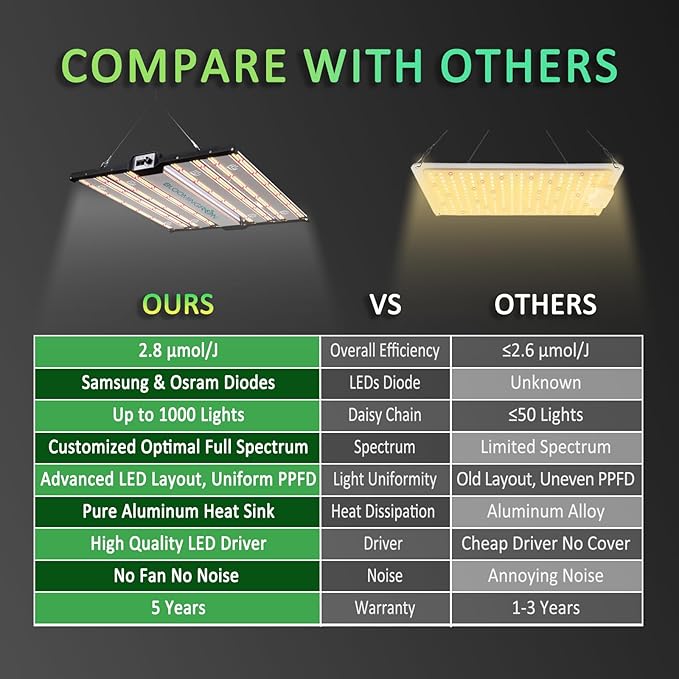 - ☀ Ideal For All Growth Stages: Excellent full spectrum- 4000K providing more white light and the 660nm light, it is especially useful during bloom where it speeds up flowering time and boost yields. Uniformly across the surface and deep into the roots and bottom of canopy for consistent, highest quality flowers.