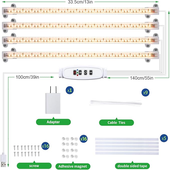 - 【Material Safety & Easy Installation】Aluminum shell, strong corrosion resistance, hard to melt, non-slip clamp base, convenient to fix the position and easy to use.The grow light bar pack comes with screws, cable ties,magnet and double-sided tapes. Compact design fits for various fixtures and surfaces. The power cord is 96 inches long for easy using in office,indoor,plant shelf,greenhouse etc