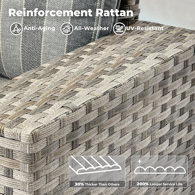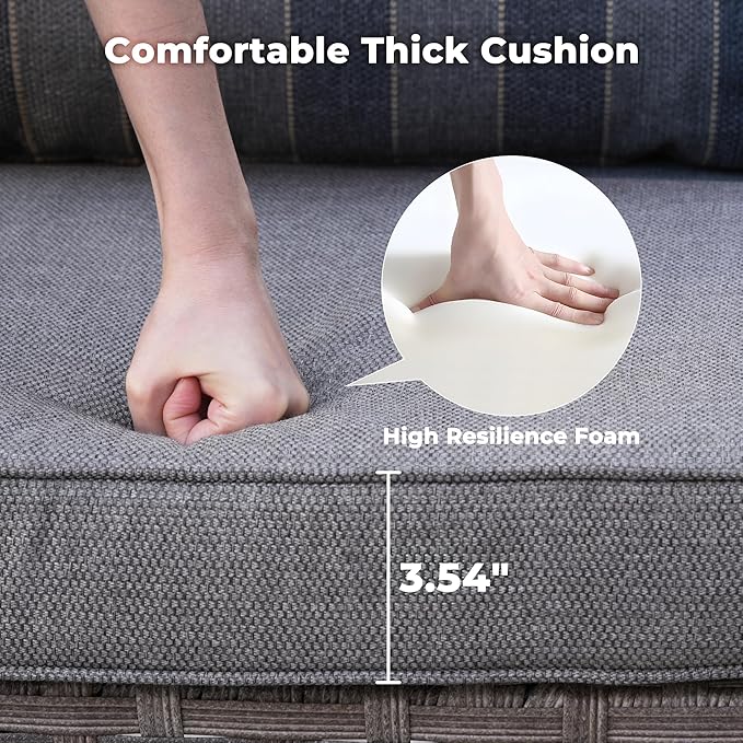 - All-weather Wicker Rattan: Our outdoor sofa sets have very durable PE wicker rattan for all-weather use and a natural texture with good coloring. The high-quality patio seating made of powder coated steel frame ensures good strength and stability