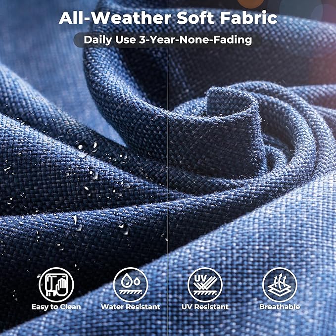 - Comfy Upgraded Cushion: The outdoor chair cushion is composed of a weather-resistant olefin fabric cushion cover wrapped in a thick inner core, making it very comfortable and breathable to sit on the chair, and give you strong lumbar support