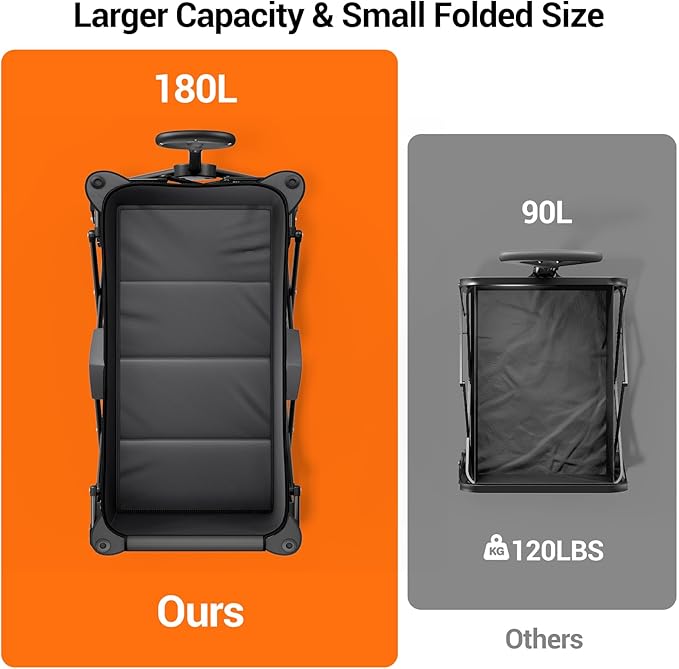 - Large Capacity Collapsible Wagon: The SYOCYO wagon is made of high quality heavy duty steel frame, which can easily load up to 330lbs. Our beach wagon of dimensions unfolded is approximately 36.8" * 22.8" * 33.9" with a storage of 180L. It can easily carry heavy items such as camping tents, beach chairs and groceries. Moreover, equipped with removable 600D oxford fabric is waterproof, easy to clean and durable