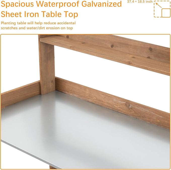 - 【Galvanized Metal Tabletop】Compared with wooden tabletop, the galvanized table of the work bench features better waterproof and durability. Just washing it with water or wiping it clean after use, which can provide enough convenience for your gardening work.With a sturdy galvanized tabletop that can hold up to 100 pounds, it can meet your gardening needs.