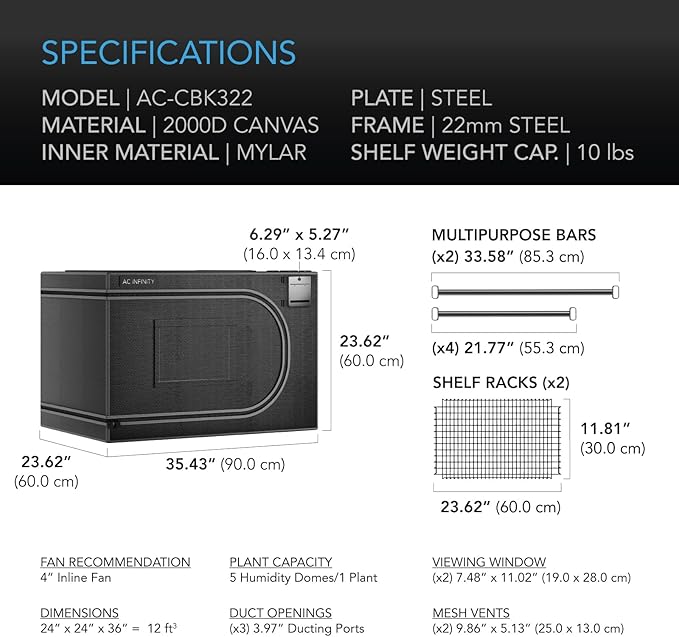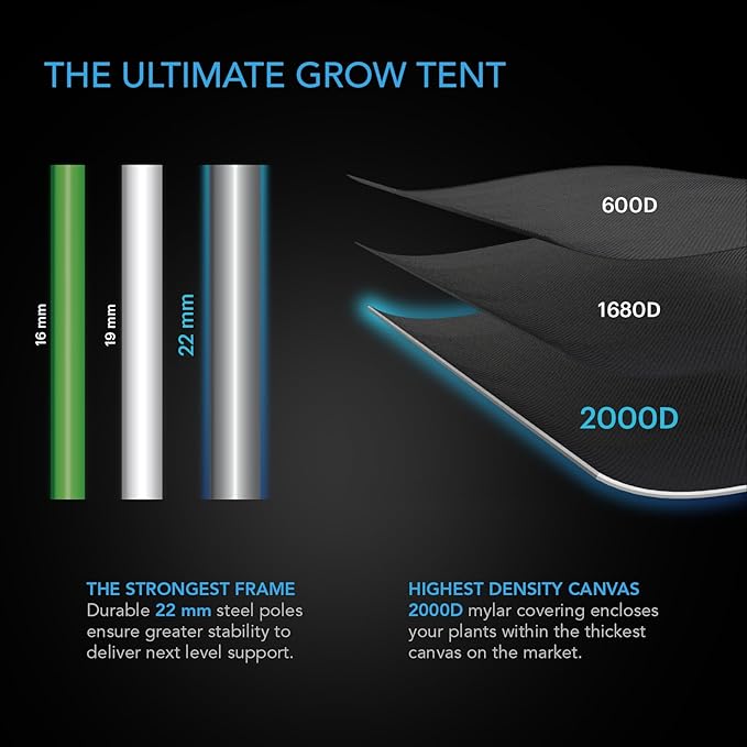 - 2000D canvas locks in humidity for your ideal climate while waterproof drip tray ensures easy cleanup.
