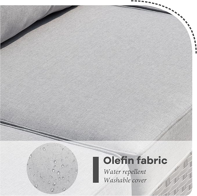 - Yarn Dyed Texture Fabric: Cushions are covered by yarn dyed woven fabric, the yarns are dyed and UV treated before woven into fabric for out door fading resistant. Looks and touches with high-end woven texture. Designed with zippers for easy cleaning. No more worry about getting cheaply made thin dyed fabric