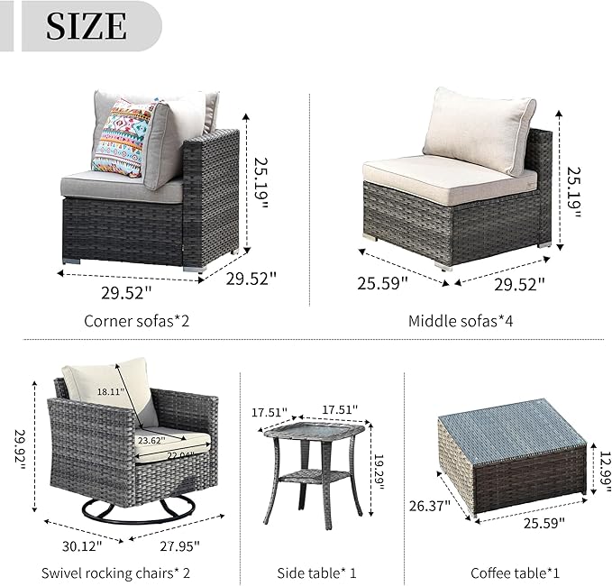- Comfortable Seating: The seat cushions padded with 3.5 inch thicken and high resilient foam for comfy sitting experience and keeping it not-easy deformed. Thicken back cushion for soft cozy backrest as well as well lumbar spine supporting