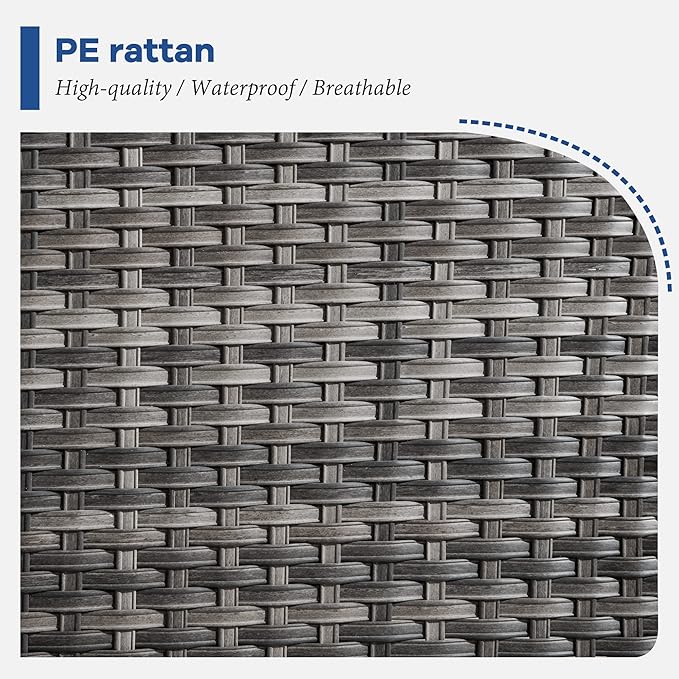 - All Weather & Durable: Selected anti-ageing treated thicken PE wicker rattan for UV resistant, wear resistant and all weatherproof. Coated steel frame ensures strong support and durability. Design for extended service life