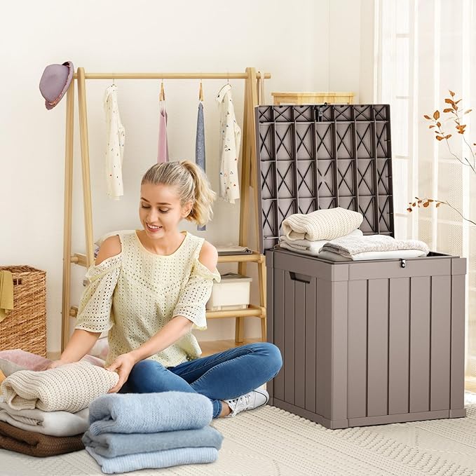 - ๐๐จ๐ฆ๐ฉ๐๐๐ญ ๐ฒ๐๐ญ ๐๐จ๐ฐ๐๐ซ๐๐ฎ๐ฅ - With product dimensions of 22.1"L x 22.1"W x 24.2"H , Although this outdoor storage box has a storage capacity of only 28 gallons, but it can hold a variety of additional items in your backyard, such as patio cushions, pillows, gardening tools, and hoses. This outdoor storage box is the best choice for storing small items.Applicable age: 0 years and above