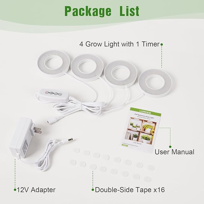 - Convenient Auto Timer Function: LORDEM plant grow light is equipped with a timer function, allowing you to set the lighting duration for 3, 6, or 12 hours. The light will automatically turn on and off at the designated time every day, providing a hassle-free lighting cycle.