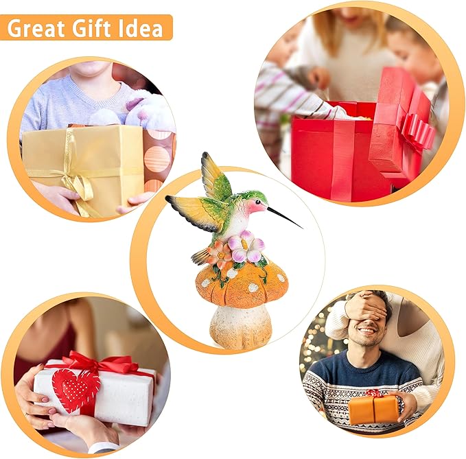 - Garden Sculptures & Statues:The Hummingbird is standing on mushroom which are entangled by vine and flowers. The item are painted in natural color, adding some mud appearance and looks real in the garden