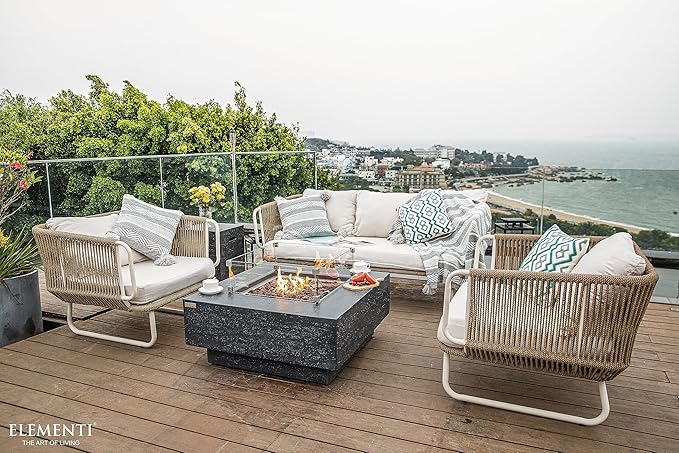 Elementi | Bundle Manhattan Gas Fire Pit Cast Concrete 36" Square Fire Table, Outdoor Fire Pit Electronic Ignition | Canvas Cover, Lava Rock Included | Dark Gray (Propane Gas)