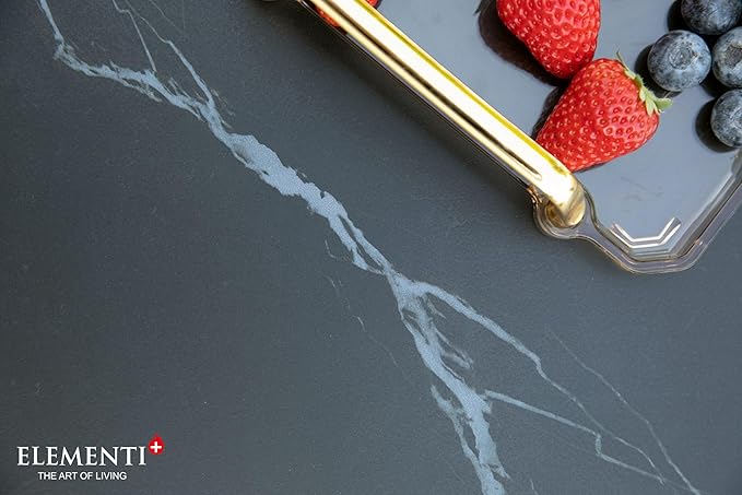 Elementi+ | Bundle Sofia Gas Fire Pit | Marble Porcelain & Metal Frame | 40" Square Fire Table | Electronic Ignition | Canvas Cover, Fire Glass & Burner Lid Included | Black | Propane Gas