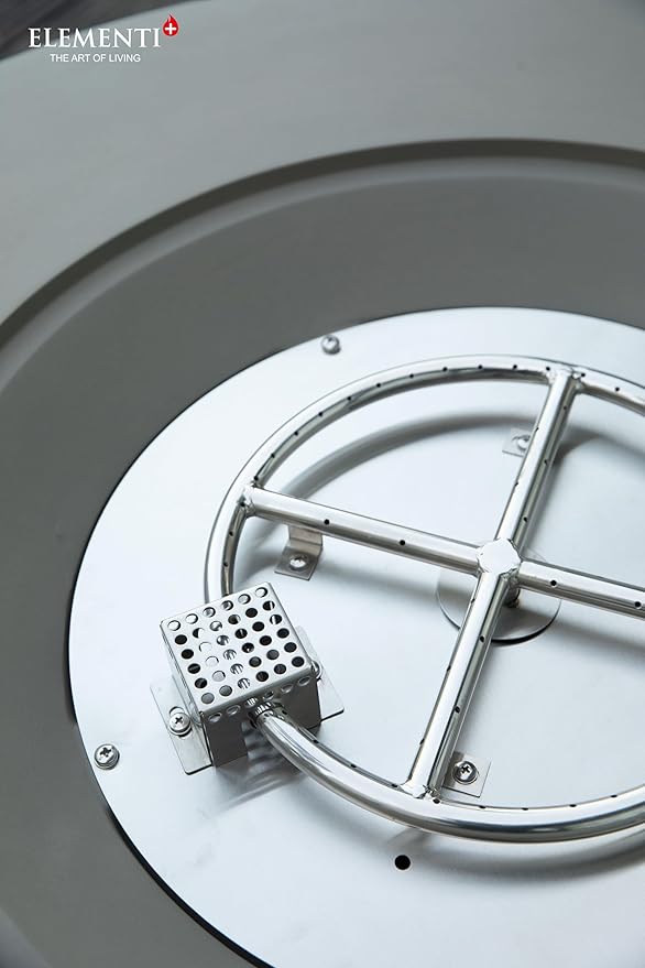 Elementi+ | Bundle Colosseo Gas Fire Pit Cast Concrete 40" Dia. Round Fire Table, Outdoor Fire Pit Electronic Ignition | Canvas Cover, Fire Glass and Burner Lid Included | Light Gray | Propane Gas