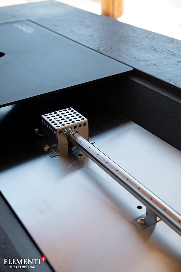 Elementi+ | Bundle Positano Gas Fire Pit Cast Concrete 60" Rectangular Fire Table, Outdoor Fire Pit Electronic Ignition | Canvas Cover, Fire Glass and Burner Lid Included | Dark Gray | Natural Gas