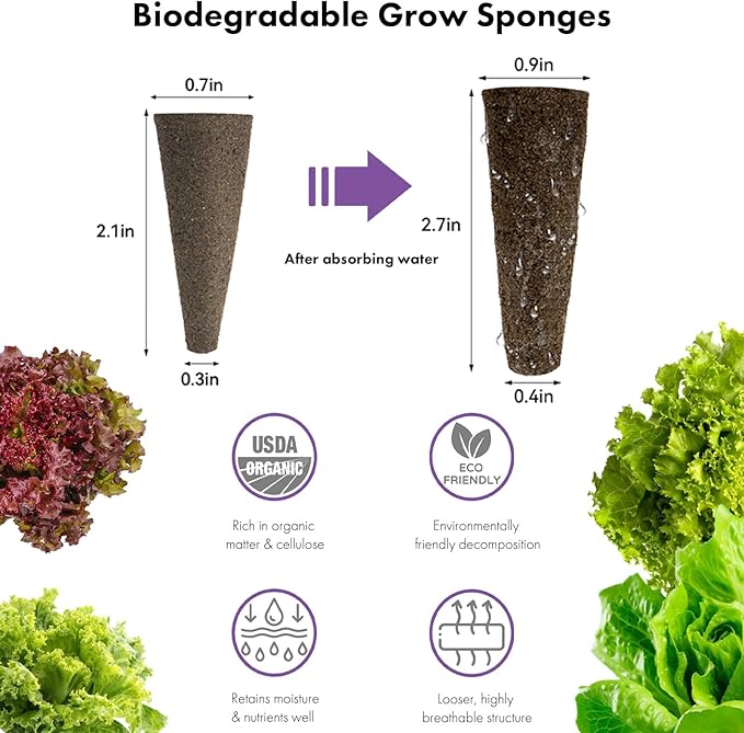 - 【Natural Organic Sponges】sponges made of peat and organic matter, featuring a loose and porous composition that retains moisture and nutrients, enabling seeds to better growth. Once the plants mature, they can remove the basket and place the sponges directly into the soil, it breaks down harmlessly, eco-friendly.