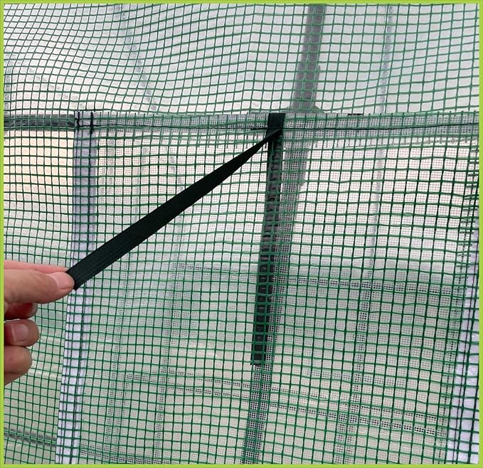 - ROLL-UP ZIPPER DOOR: Features a roll-up door with a smooth zipper closure, offering easy access and enhanced ventilation. The adjustable airflow ensures your plants thrive in an optimal environment, preventing overheating and promoting growth. The door can be secured open for continuous airflow or closed to lock in warmth and humidity, adapting to different seasons and plant requirements.