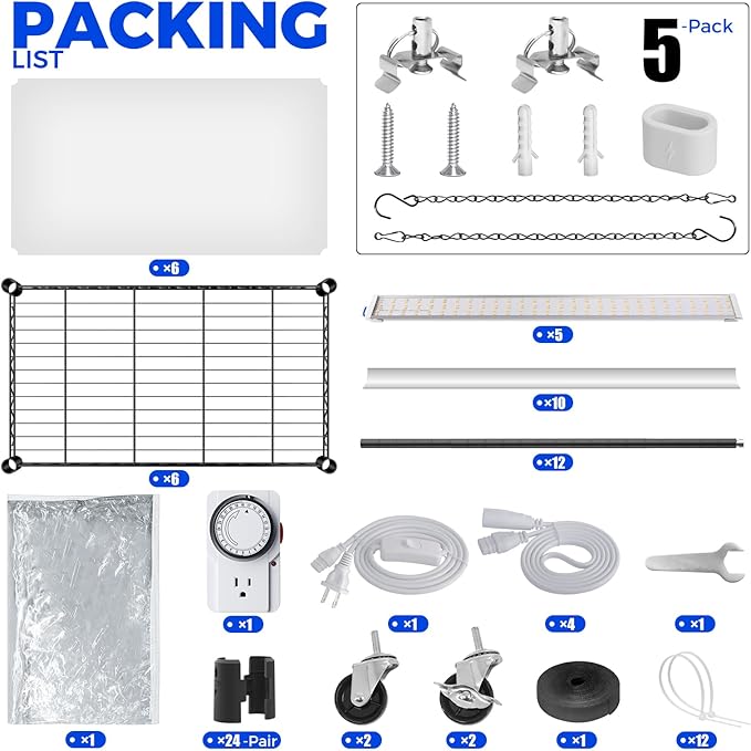 - Do It Yourself with Timer Socket: you can freely adjust the height of the shelves as you wish to accommodate the light to different pots and seedling trays needed. Equipped with a mechanical timer, it only needs to be set once to automatically turn on at the same time every day