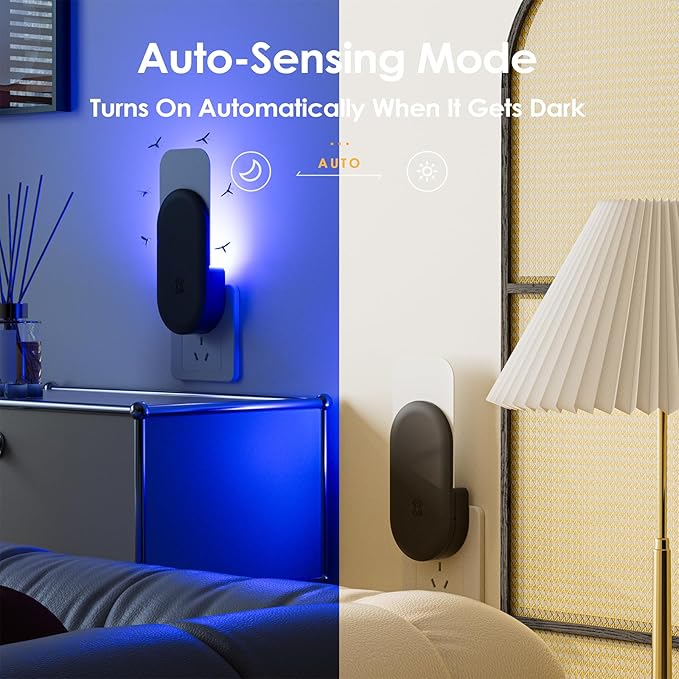 - Smart Night Light Mode: With two LED beads, this Flying Insect Trap offers smart and night light modes for versatile use. The device automatically detects ambient light levels in smart mode, while the night mode provides continuous illumination. Ideal for keeping your room insect-free and well-lit during nighttime hours.