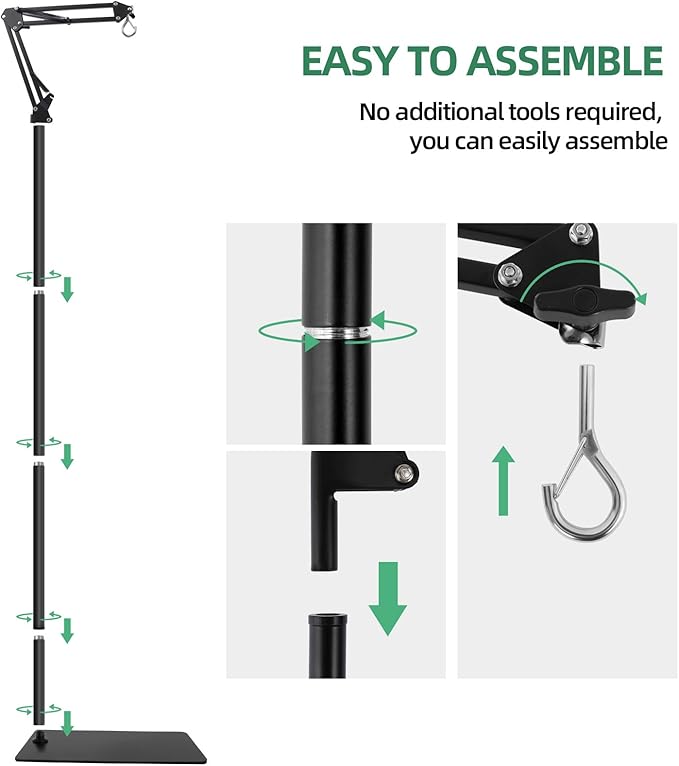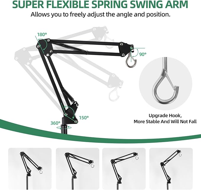 - SUPER FLEXIBLE SPRING SWING ARM - The swing arm with hook can be freely adjusted in angle and position.360° rotatable design allows you to easily and flexibly adjust the angle and extension width of the light stand. When you need to open the top of the glass container, you can gently push it to one side. (It is prohibited for all swing arms to be parallel to the ground.)