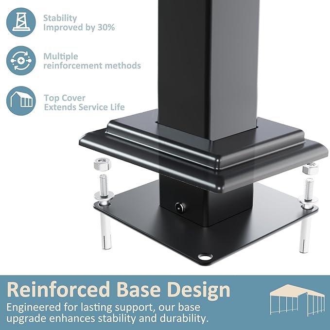 - 【Upgraded Reinforced Base】Our carport's base is meticulously designed for enhanced stability, adapting to diverse surfaces while providing integral structural support. The aesthetically designed covers further protect against the elements, ensuring longevity and maintaining the structure's integrity.