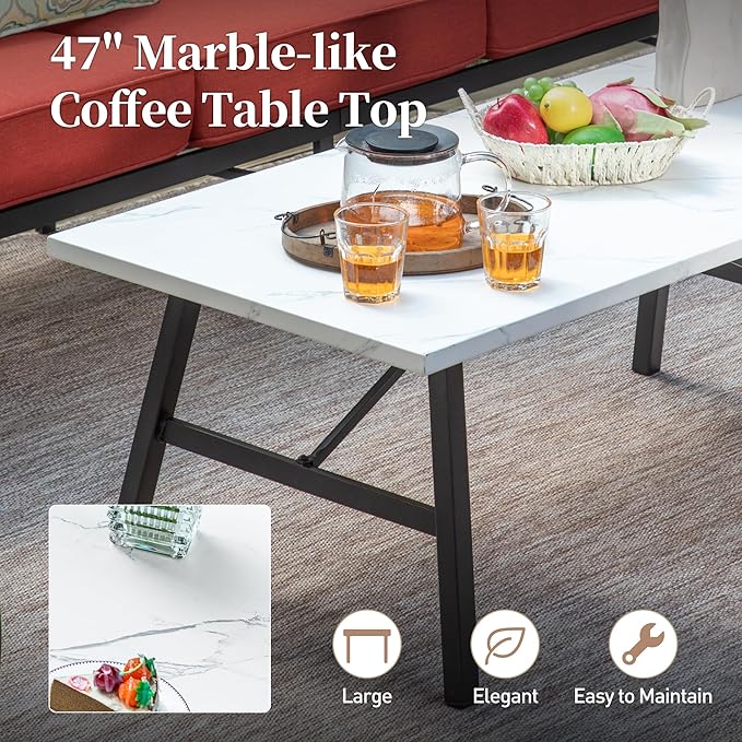 - ALL WEATHER HEAVY-DUTY FRAME: This metal backyard furniture set is made of high-performance E-COATING and POWDER-COATING dual rust prevention techniques that are All weather resistant, anti-rust, and easy to clean, with no special care needed. That patio conversation set has a heavy-duty wrought iron metal frame, The single chairs could support up to 350 lbs weight and the 3-seater sofa supports 900 lbs