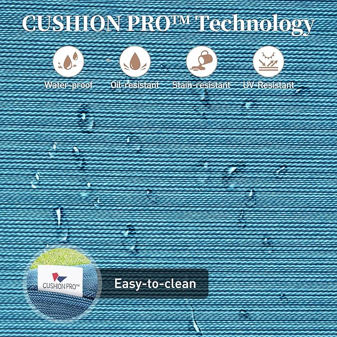 - ADVANCED CUSHION TECH: Experience the happiness of easy maintenance with the SUNSHINE VALLEY patio conversation set. The fabric of this patio furniture set is made with CUSHION PRO technology. It has excellent waterproof, oil-proof, and stain-resistant properties making the dirt easily wiped down. It can really meet your outdoor leisure needs