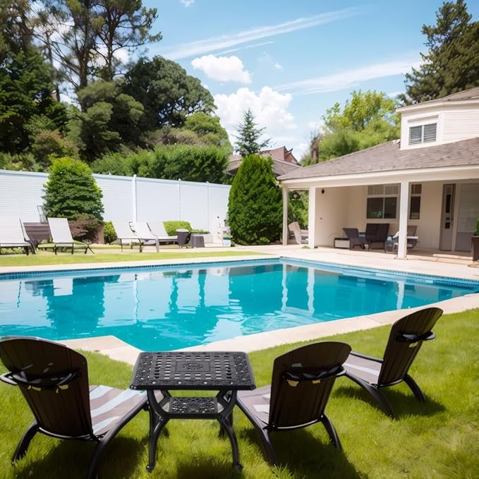 - 【High Quality】:Our whole outdoor side table is made of high quality cast aluminum, which is not only sturdy , but also not easy to rust. The four aluminum legs are specially connected to make the table more stable and have a stronger load-bearing capacity. You can use it indoors or outdoors without worrying about corrosion or damage.