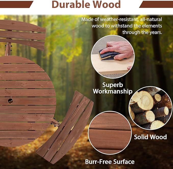 - 【High-Qulity Material】The circular table is made of 100% fir wood for high sturdiness and crack resistance, ensuring it can endure prolonged outdoor use. Thickened support frame ensures large weight capacity.