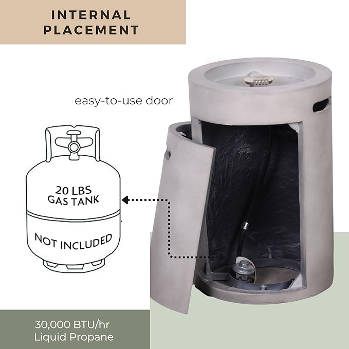 - Stylish and Functional: Enhance your outdoor living space with our Ф16" round fire pit. Its sleek design in a cement gray color adds a modern touch to any patio or backyard. Enjoy the warmth and ambiance of a real fire with the convenience of liquid propane fuel