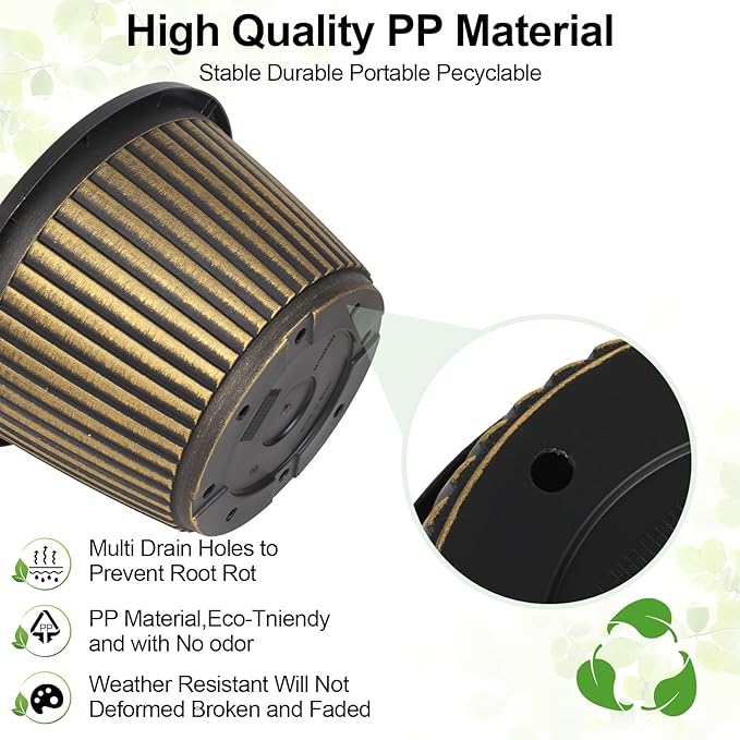 - 【MODERN STYLE PLANTERS】 Indoor planters with saucers provide a unique,nice style in ribbed design which gives an understated elegance that will enhance the beauty of your plant. These 10 inch plant pots are available in red-brown &blue-green & gold finished with a black antique stain. Plastic flower pots would be a beautiful addition to anyone’s deck or sunroom or house! for indoor and outdoor . With better breathabiity and water absorption, it’s beneficial to the healthy growth of plants
