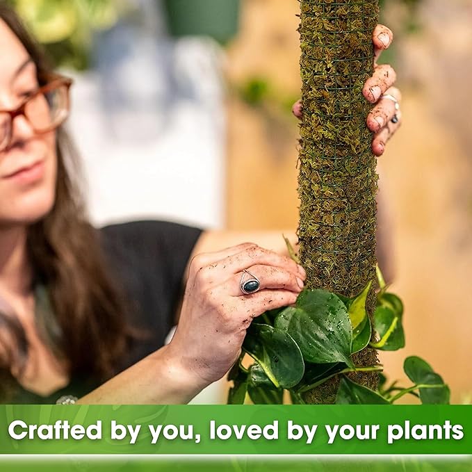 - π³ πππ-ππ-πππ πππ ππππ ππππ πππ: Package comes with a roll of premium PVC coated wire mesh (8.6ββ Γ 6.5ft), 10 oz natural forest moss, a pair of gloves, 50 pcs cable zip ties, 4 rolls of jute string. The full range of accessories allow you to make & customize moss stakes more suitable for your indoor climbing plants without worrying about purchasing additional materials separately.