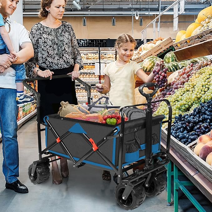 - Rear Push Handle Design: This wagon cart has extra collapsible rear handle design, mainly for carrying heavier things, push the rear handle will become more easily and won't get tired for a long time. The large capacity can store more things, very practical. ideal for going to the beach, sporting events, picnics, walking the dog, moving, or even just going to the market for groceries or other shopping trips.