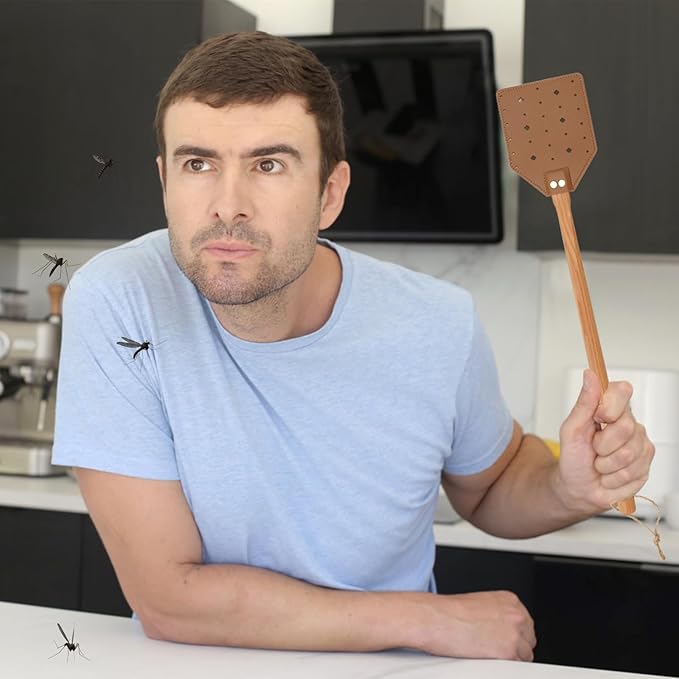 - [Easy Strike] Set includes 3 leather fly swatters. The fly swatter has a long handle and a large swing area to help you catch flying insects accurately with less effort.