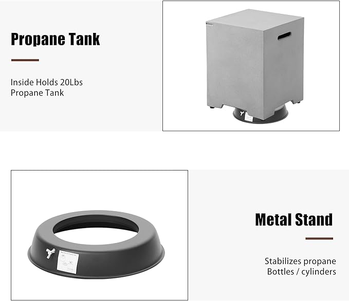 - 🔥Lightweight Concrete: This propane fire pit and tank holder set is constructed of lightweight concrete and features a modern light beige finish. This provides a highly durable structure that can hold a substantial amount of weight