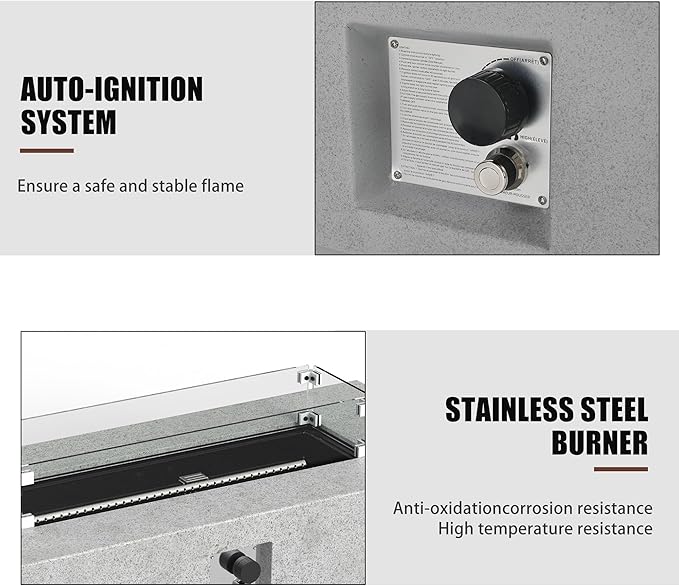 - 🔥Tank Holder: This rectangle gas fire pit comes with a matching tank holder to keep your propane tank inconspicuous. This is also made of lightweight concrete so you can arrange this piece however you please and your set will always look classy