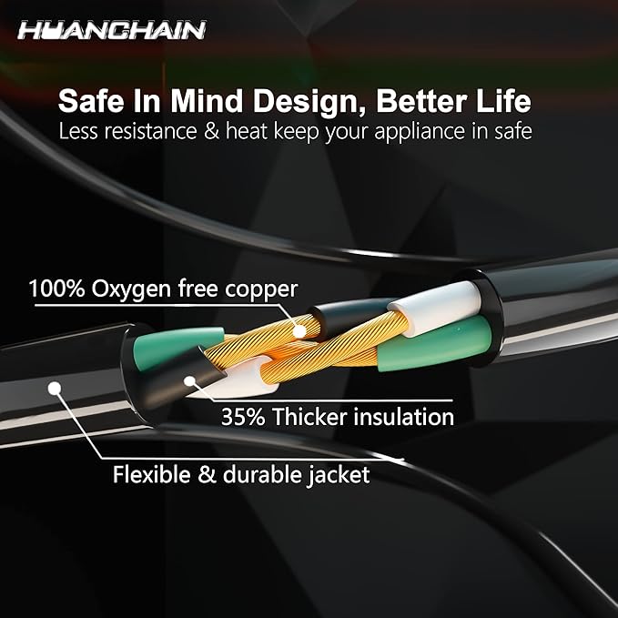 - High Flexible & Easy to Use: HUANCHAIN high flexible vinyl extension cable cords have better bending resistance and prevent them from breaking during long-term movement, bending, and pulling; Super soft feel, easy to unfold when used; Each outdoor extension cord has storage straps and is easy to repack and recycle after use; Open the storage straps when power is on and unfold the black outdoor extension cord 200 ft more safe