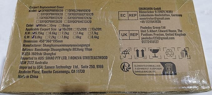 - VEVOR 10x20 Carport Replacement Canopy Cover - Robust and Versatile Shelter Solution: Practical Size-Perfectly fit your 10ft x 20ft garage frame with the VEVOR Replacement Canopy Cover. This 10'x20' canopy provides ample coverage, ensuring your space is well-protected. Ideal for replacing worn-out canopy fabric. (Note: Frame not included.)