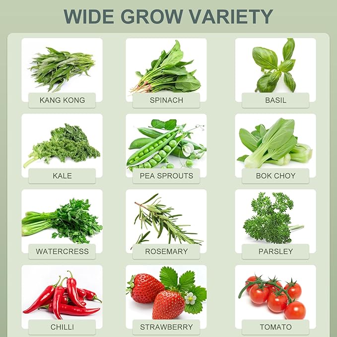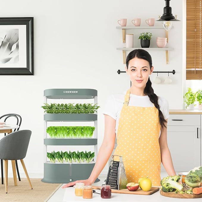 - 【Larger Capacity Bumper Harvest】Crownow indoor gardening system allows you to grow 64 plants at a time,including herbs,vegetables,fruits,or flower varieties,which makes you get a bigger harvest.