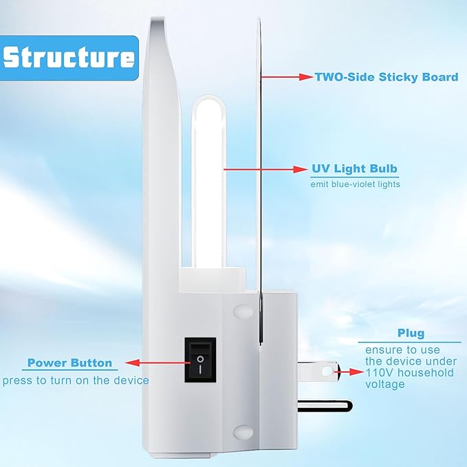 - EFFECTIVE MOSQUITO TRAP: Emitting 365nm blue-violet lights, our mosquito trap effectively attracts mosquitoes, moths, fruit flies, gnats, and other small flying insects and captures them with highly adhesive sticky boards to eliminate the pests.