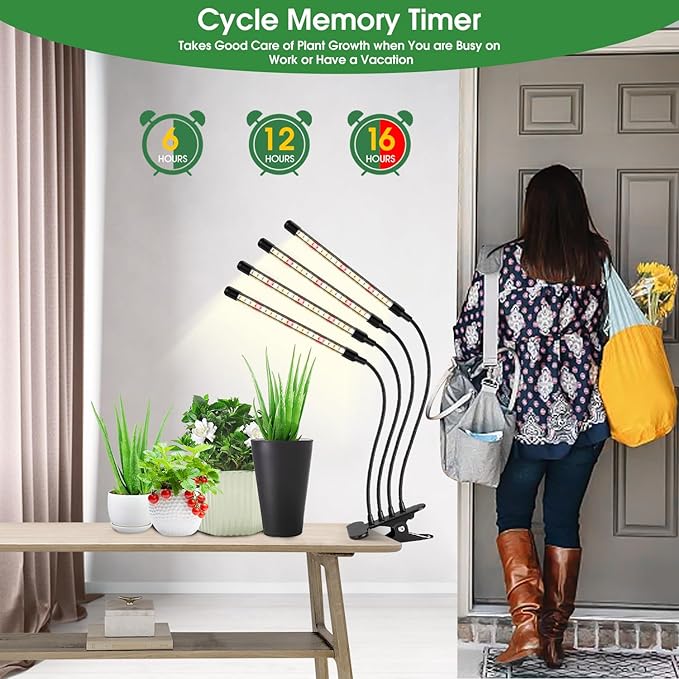 - Cycle Memory Timer: This plant lamp supports growth with an auto timer function and a USB plug. Set the timer for 6, 12, or 16 hours according to your plants' needs, and it will automatically turn on and off daily.