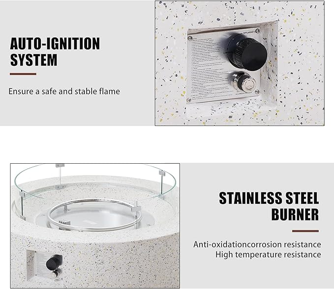 - 🔥Lightweight Concrete: This propane fire pit and tank holder set is constructed of lightweight concrete and features a modern light beige finish. This provides a highly durable structure that can hold a substantial amount of weight