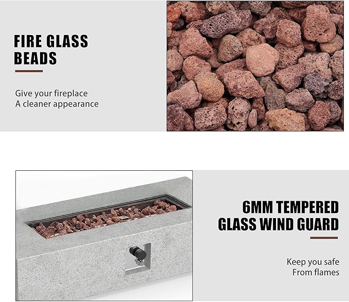 - 🔥Tank Holder: This rectangle gas fire pit comes with a matching tank holder to keep your propane tank inconspicuous. This is also made of lightweight concrete so you can arrange this piece however you please and your set will always look classy