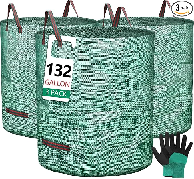 3 Pack 132 Gallon Reusable Yard Waste Bags Heavy Duty Lawn and Leaf Bags Yard Waste Container Garden Grass Bags