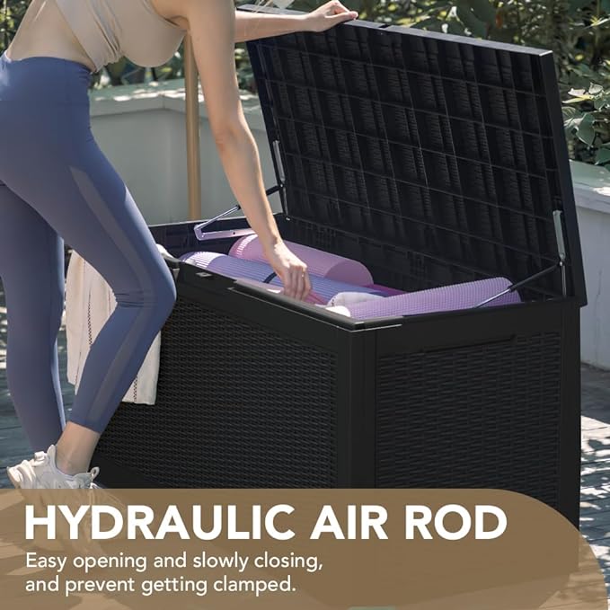 - [Large Storage Capacity]: This patio storage box has up to 95 gallons of storage. It measures 46.5"L x 20.7"W x 23.8"H. It can hold indoor and outdoor items like cushions, tools, and equipment.