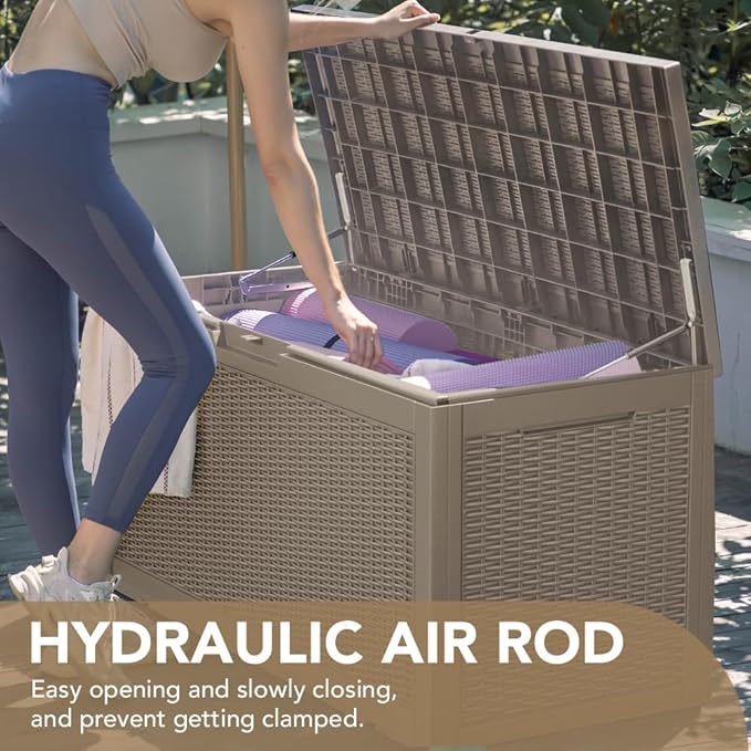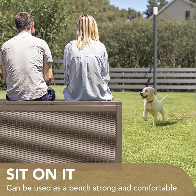 Devoko 95 Gallon Deck Box Large Resin Outdoor Storage Box, Waterproof and UV Resistant Lockable for Outdoor and Patio, Large Storage Cabinet for Patio Furniture, Tools and Pool Supplies, Light Brown
