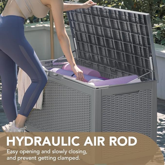Devoko 95 Gallon Deck Box Large Resin Outdoor Storage Box, Waterproof and UV Resistant Lockable for Outdoor and Patio, Large Storage Cabinet for Patio Furniture, Garden Tools and Pool Supplies, Grey
