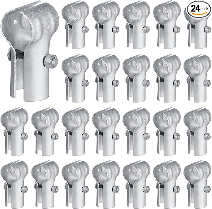 Tandefio Pipe Clamp Chain Link Fence T Clamp Galvanized Steel End Rail Clamp for OD Pipe, Bolts and Nuts Included(24 Pcs,1-3/8")